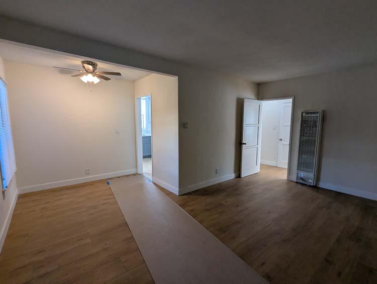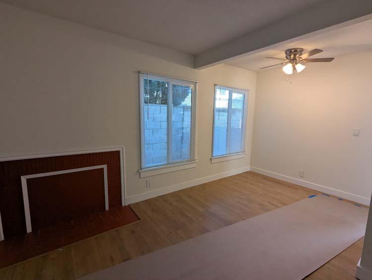Beautifully remodeled 2-bedroom 1-bathroom unit in a duplex in the heart of Ladera Heights (Fairfax & La Cienega). This property features two single-story units on the lot. The bright, modern back unit includes fresh paint throughout, a spacious living room with a charming decorative fireplace, brand new dual sided wall heater, and a stylish kitchen featuring brand-new quartz countertops, new cabinets, a stainless steel sink, new gas stove, microwave, refrigerator, and ample cabinetry for all your storage needs. Both bedrooms offer closets, ceiling fans, and ample natural lighting. In-unit laundry area with washer and dryer hookups, and separate brand-new water heater. Electrical has been completely upgraded with new wiring and new panel. Backyard laden with citrus trees offers space to relax and enjoy the quiet neighborhood. Nestled on a quiet, friendly street, this duplex provides easy access to LAX, the 405 freeway, Ladera Park Ave, SoFi Stadium, Westchester Center, Culver City, Baldwin Hills, and a variety of shopping, dining, and transit options. Enjoy contemporary single-story living in a prime location with everything you need just minutes away.