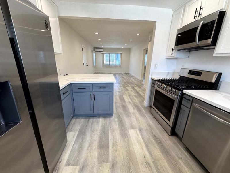 Spacious 3 bedroom 1 bath 2nd floor unit in Westchester, close to LAX. Upgraded kitchen with quartz counter-top, shaker style white and grey cabinets, stainless steel sink, stainless steel stove, stainless steel refrigerator, dishwasher, and microwave. Luxury vinyl plank flooring throughout. Wall Heater and split AC in the living room. Separately metered for gas and electricity. Bedrooms feature ceiling fan with lights, and mirrored closet doors. Lots of cabinets for ample storage in the bedrooms, hallway, and kitchen. Washer and Dryer hook-up inside the unit. Tenant(s) responsible to get their own stackable washer & dryer machines, if so desired. One car garage in the back included for additional storage/parking. Lots of windows throughout offer fresh breeze and ample natural light. Conveniently located in Westchester, close to I-405 and LAX, all shopping, recreational facilities the neighborhood offers.